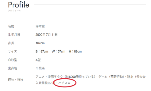 また、鈴木聖さんの公式プロフィールには、趣味・特技が「パチスロ」と記載されています。