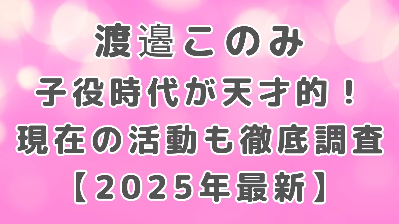 渡邉このみさんの“天才子役”時代を振り返り、2025年現在の姿や活動を調査しました。